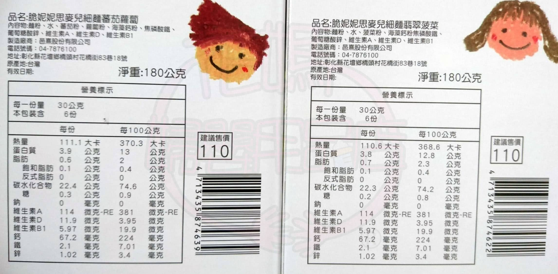 脆妮妮思麥兒細麵 翡翠菠菜80G(30G*6) 87461