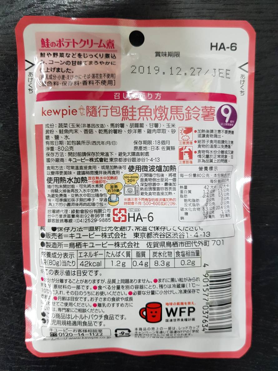 日本KEWPIE HA-6 鮭魚燉馬鈴薯 隨行包 80G (9個月)03763