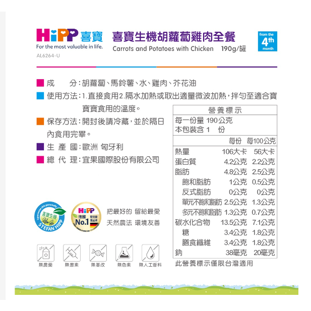 HiPP 喜寶生機胡蘿蔔雞肉全餐 12214