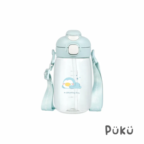 PUKU藍色企鵝 圓圓直飲吸管兩用揹帶隨身水壺550ml 藍色 P14745