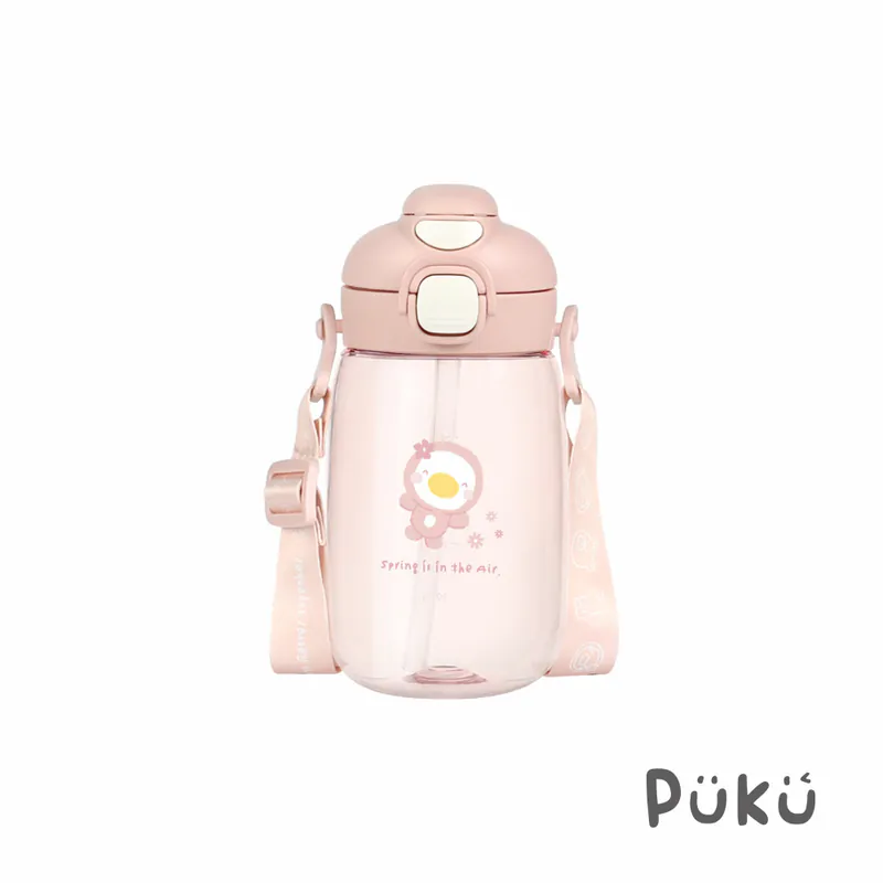 PUKU藍色企鵝 圓圓直飲吸管兩用揹帶隨身水壺550ml 粉色 P14745