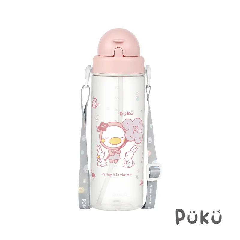 PUKU 藍色企鵝 飄飄奶蓋Tritan吸管隨身水瓶500ml (粉色)