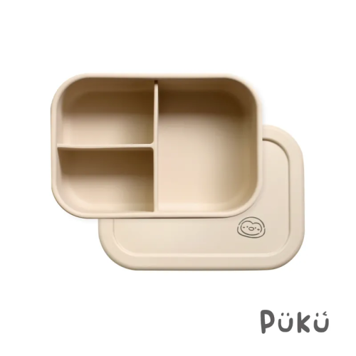 PUKU藍色企鵝 午茶華夫格分隔矽膠餐盒(杏桃) 餐盤 方形餐盤 81109