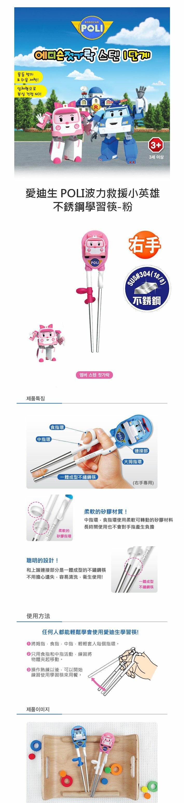 Edison 愛迪生 3D立體 POLI 安寶 救援小英雄 兒童不鏽鋼學習筷(右手) 30823