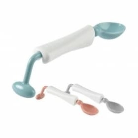 ●360度旋轉設計,無論寶寶怎麼拿湯匙,都能保持匙面水平永遠朝上,有效防止練習過程中撒出食物,增加自主進食信心。