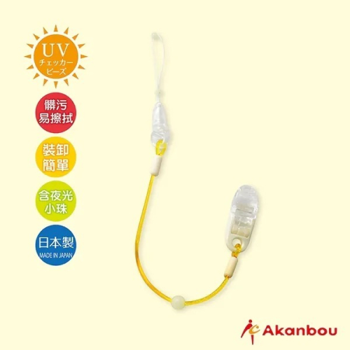 日本 Akanbou UV check 奶嘴鏈(黃) 33626