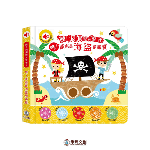 《聽!洞洞裡有聲音!》系列書,每本故事書都設計五種豐富的聲音,供孩子與正在閱讀的故事互動,只需要按下按鍵,就能夠聽見海浪的聲音、蒸汽船鳴響的轟鳴聲、以及魚群在水下吐出泡泡的環境聲,可以帶給孩子聽覺上的刺激,幫助孩子累積感官經驗,幫助他更認識世界!