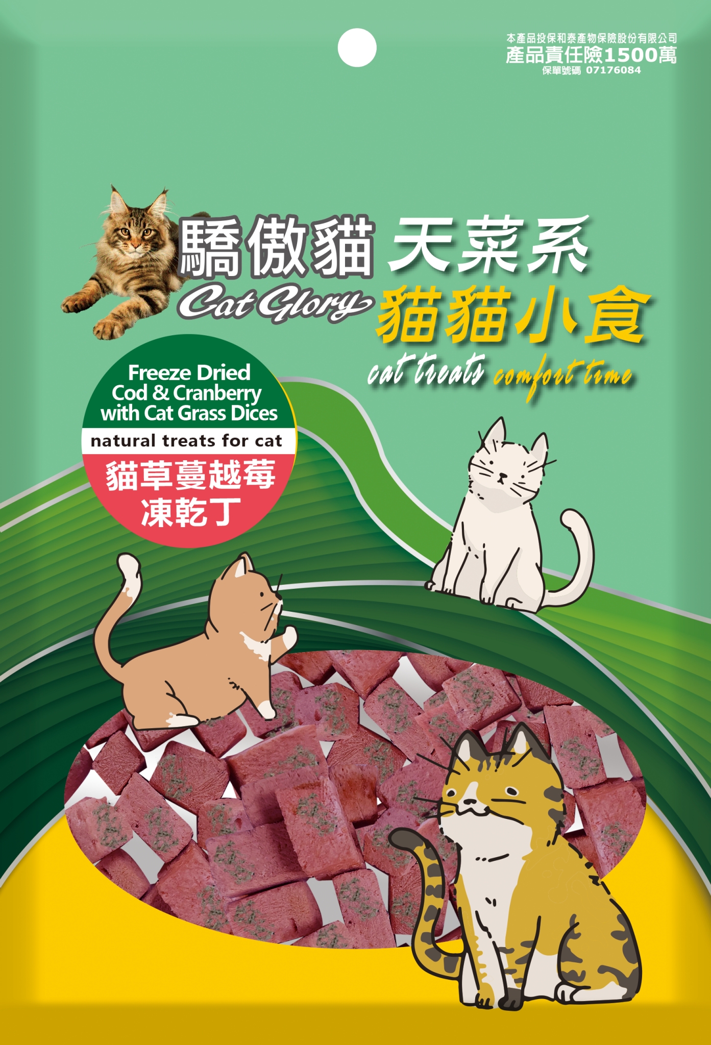 以高蛋白鱈魚及高纖大麥草為原料,加佐蔓越莓/紫薯增加口味選擇~