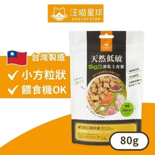 因使用冷凍乾燥技術保留營養,汪喵星球小方粒凍乾主食餐的孔隙較乾飼料大,受潮風險略高於乾飼料,建議毛爸媽們可以一次放少量至自動餵食機內,來減低受潮機率唷。
