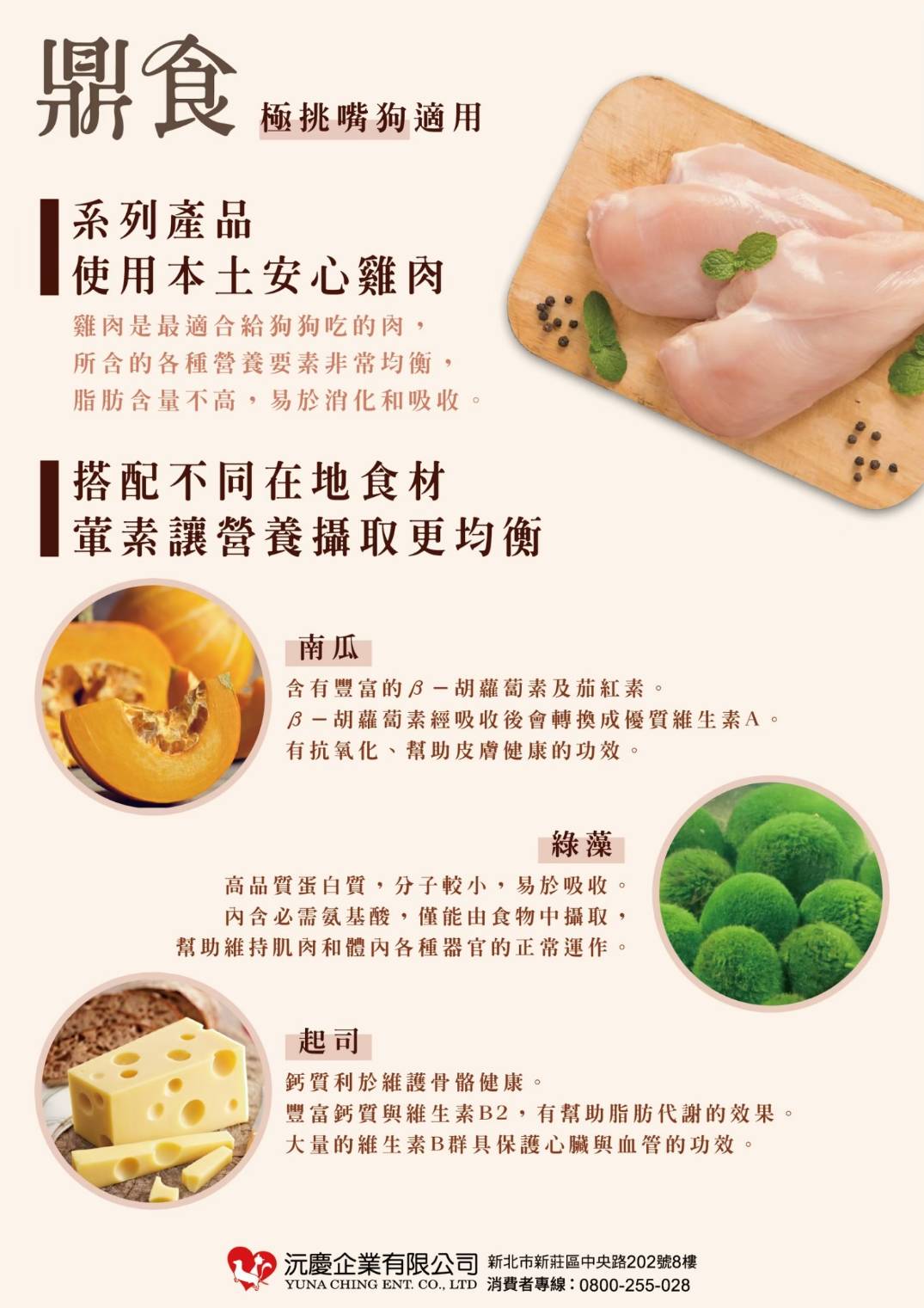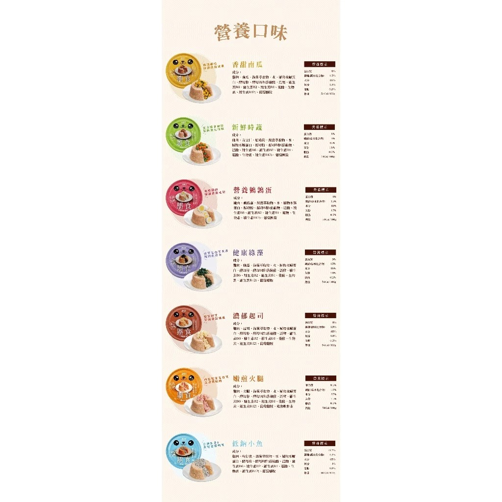 ►主成分:國產雞肉、動物植膠、水解動物蛋白、綜合維他命、維他命E、水、酵素
