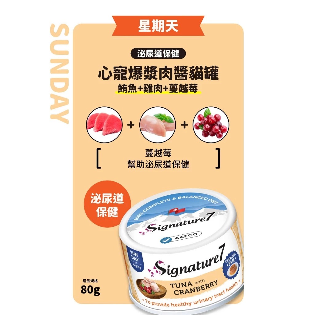 雞肉、水、鮪魚、蔓越莓乾、維生素和礦物質(磷酸三鈣、氯化鉀、氯化鈉、氯化膽鹼、硫酸鎂、硫酸亞鐵、氧化鋅、α-生育酚醋酸酯、菸鹼酸、維生素A乙酸酯、銅蛋白、硫酸錳、硝酸硫胺明、磷酸氫鈣、泛酸鈣、核黃素補充劑、鹽酸吡哆醇、生物素、維生素B12補充劑、亞硒酸鈉、膽鈣化固醇、葉酸、碘化鉀、氧化鎂)、肝臟、甘胺酸、穩定劑、著色劑、鮪魚萃取、牛磺酸