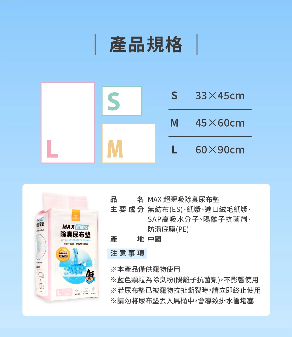 🔹 品名:MAX超瞬吸除臭尿布墊