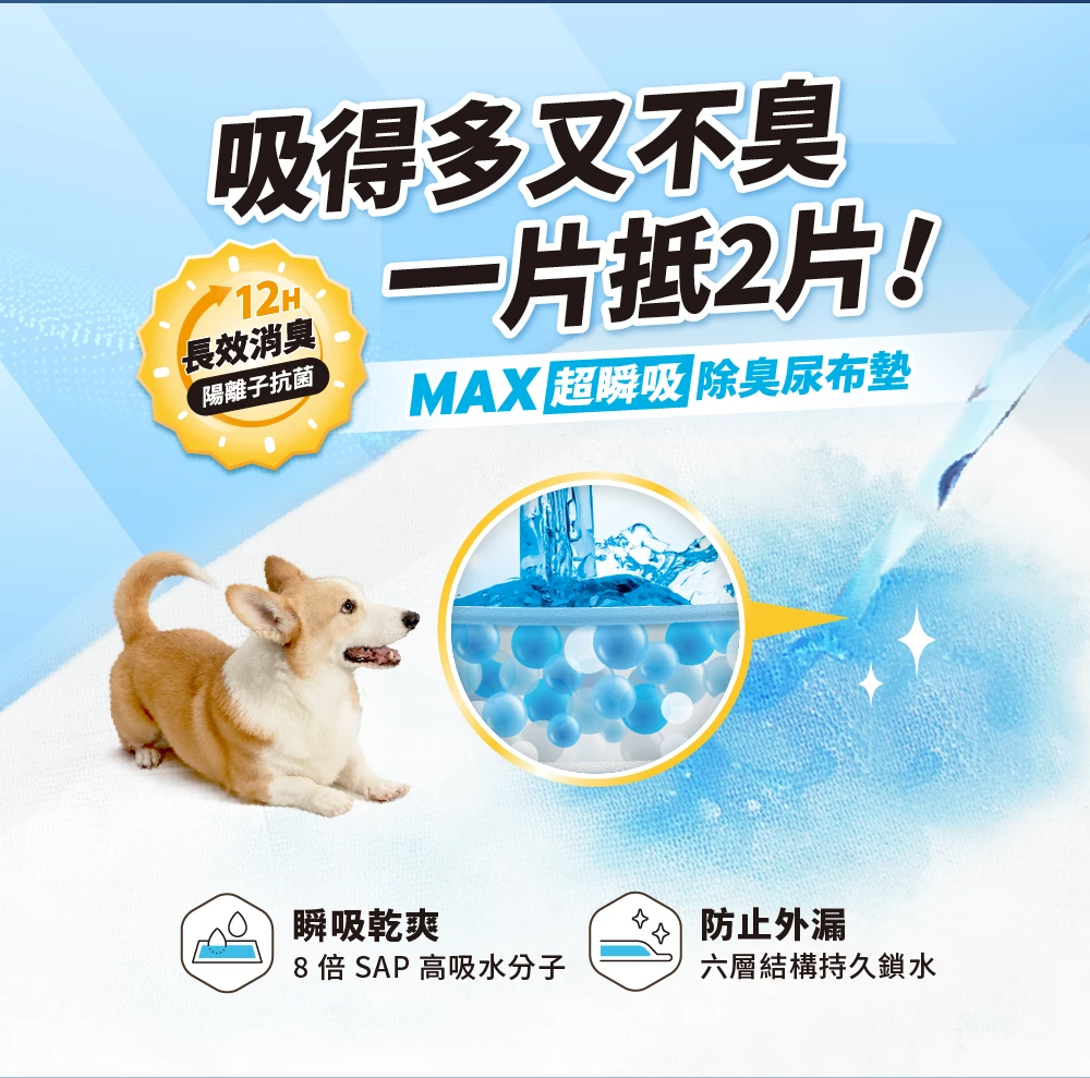 【汪喵星球】 MAX超瞬吸除臭尿布墊|狗狗尿墊 單包 兩包組 S M L