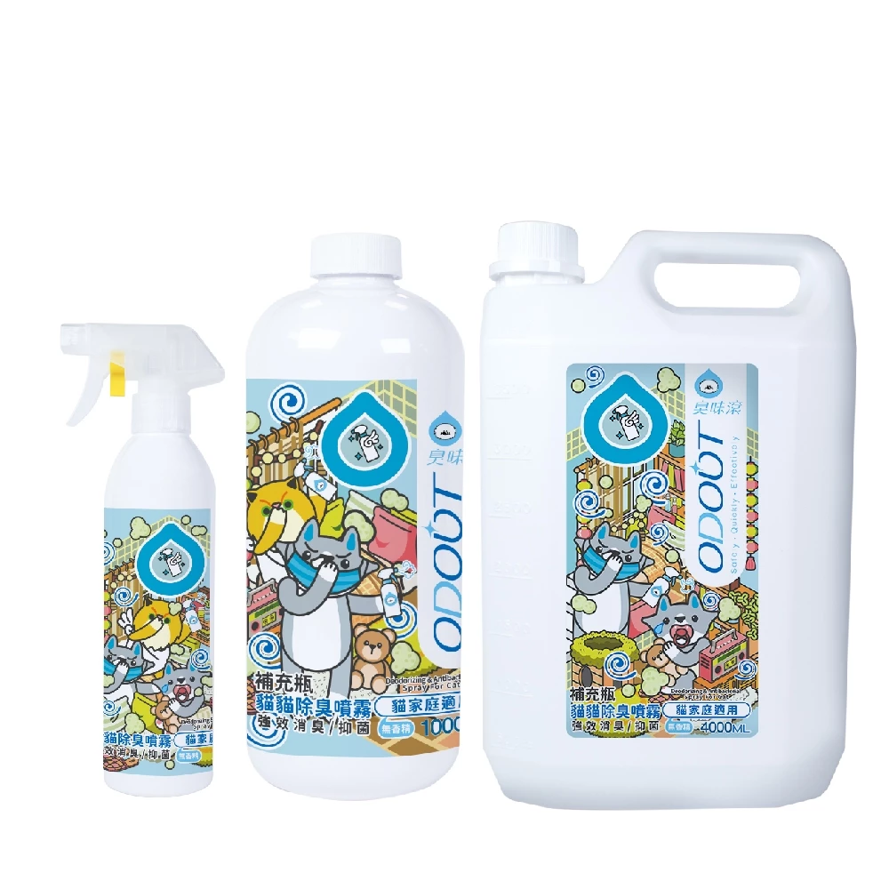 直接噴在貓砂盆、跳台、亂便溺處、嘔吐處…等,及可達到除臭、抑菌效果。