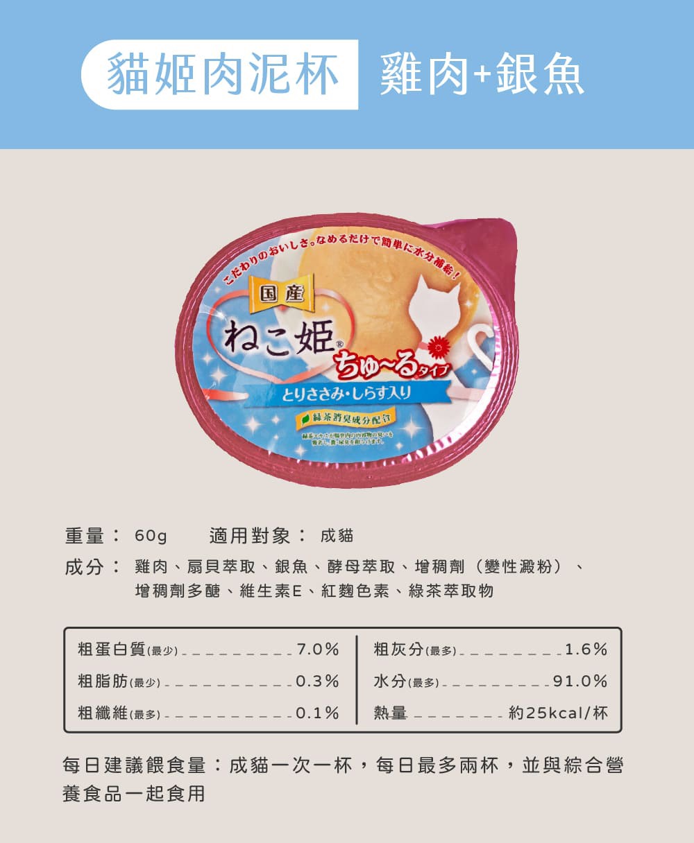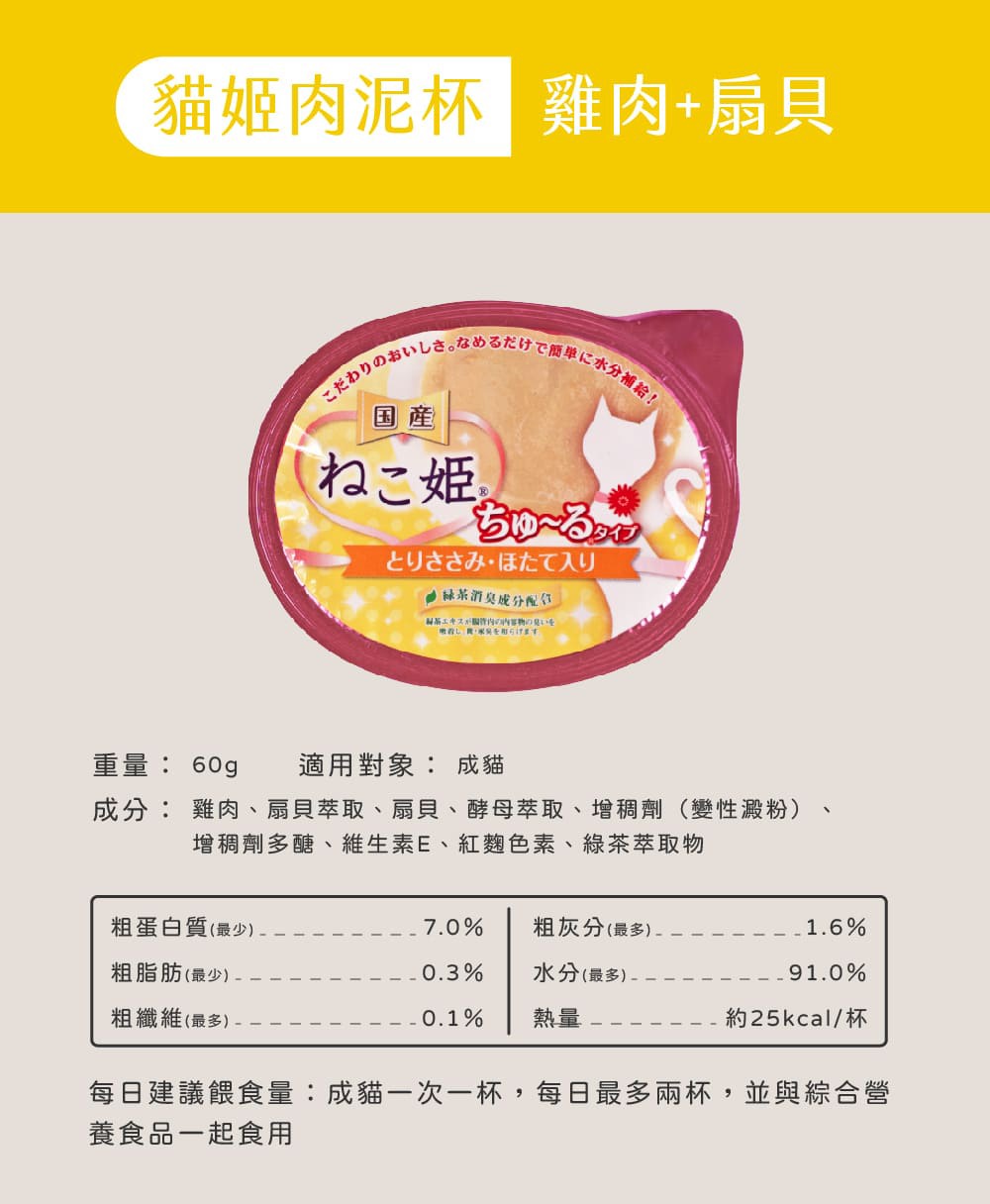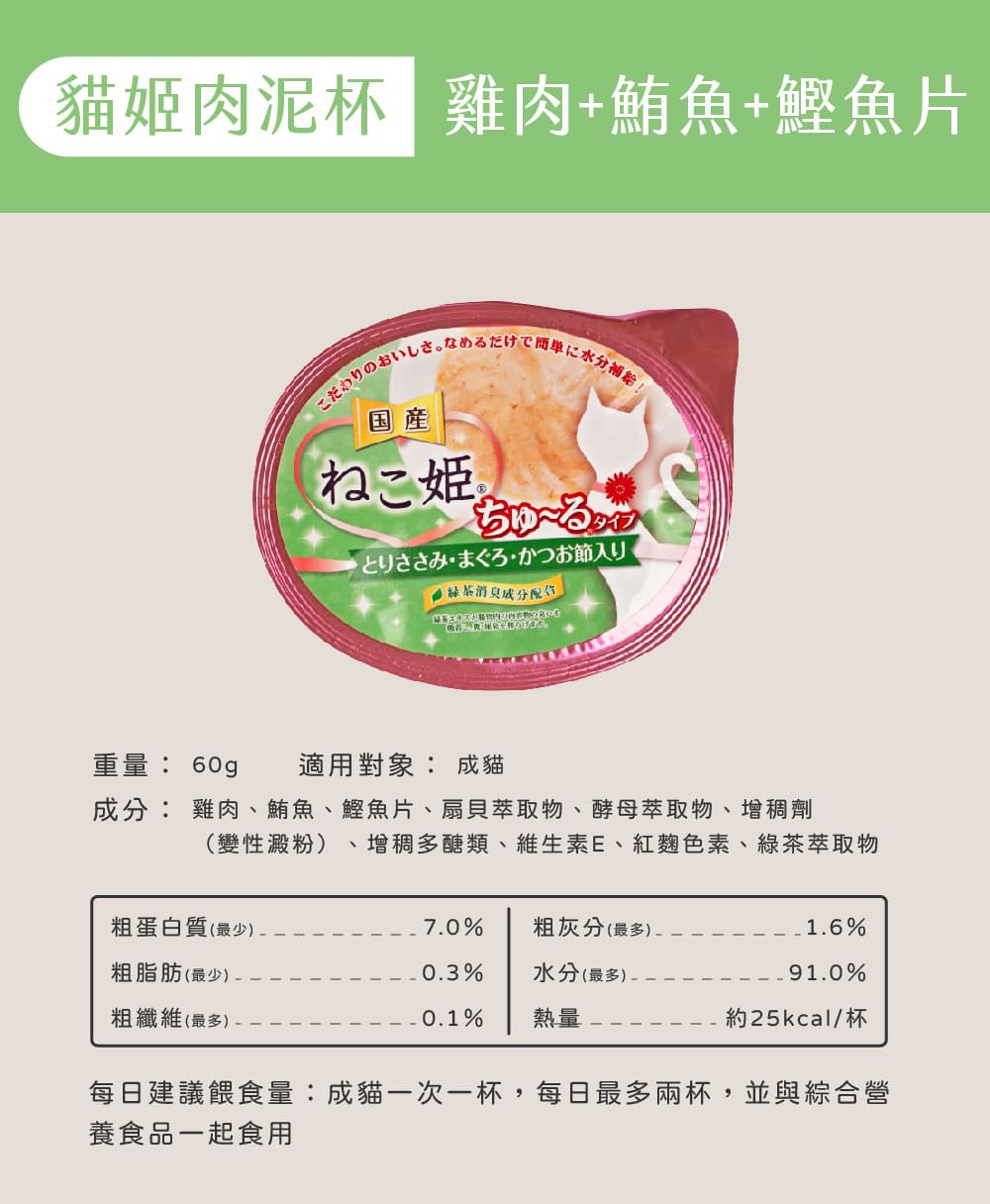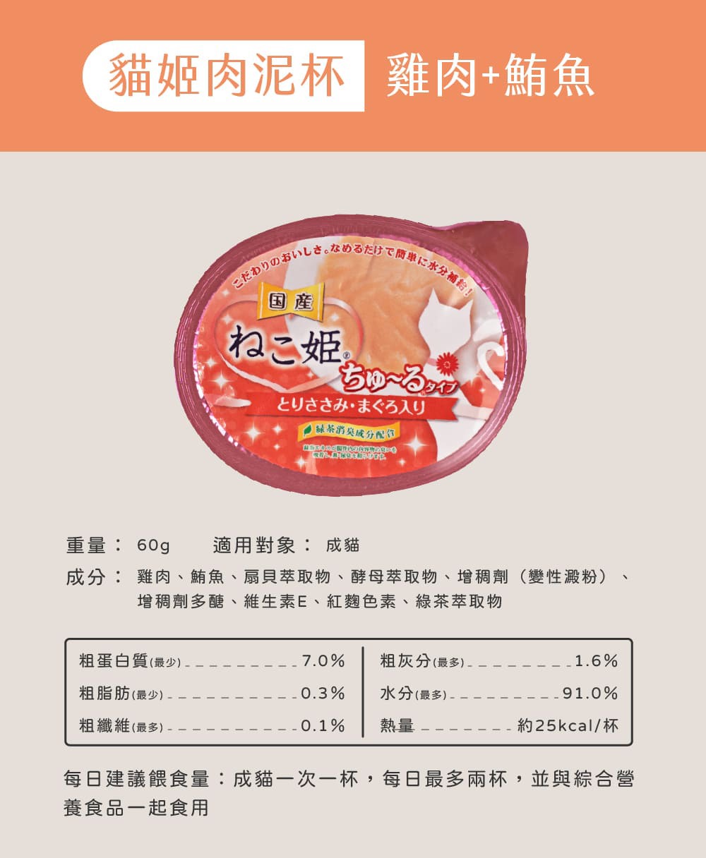 貓姬 肉泥杯 60g/杯 共5種口味 貓肉泥 肉泥杯 成/幼貓 貓副食