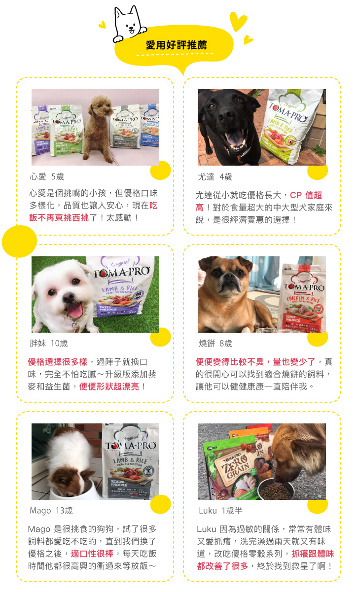 | 優格狗狗天然零穀食譜,低敏高 CP 值飼料首選推薦,不含致敏穀源,添加 5 種蔬果提供豐富礦物質、維生素與抗氧化物,搭配優質腸益菌幫助腸道健康!無穀零負擔,樂活好簡單。 |