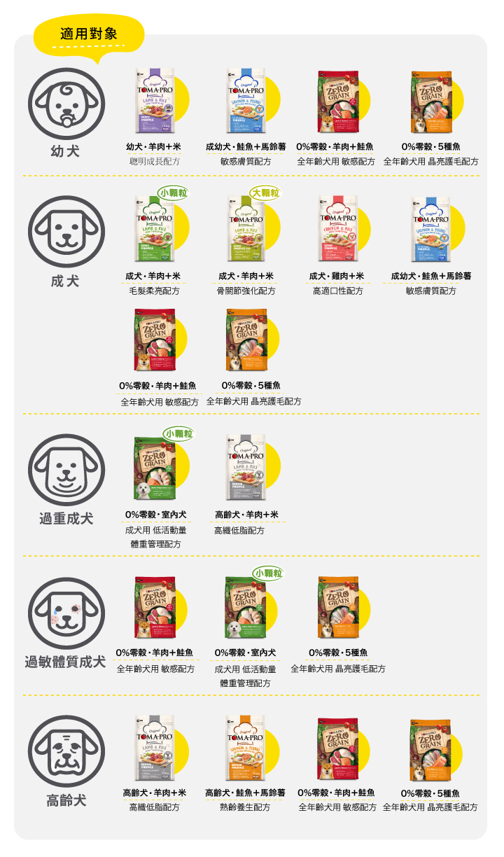 體重(kg)每日建議餵食量(g)6-12 周3-4 個月5-7 個月8-12 個月1 歲以上★以上為建議餵食量,實際餵食時仍須視狗狗的活動量與生活環境等因素增減。
