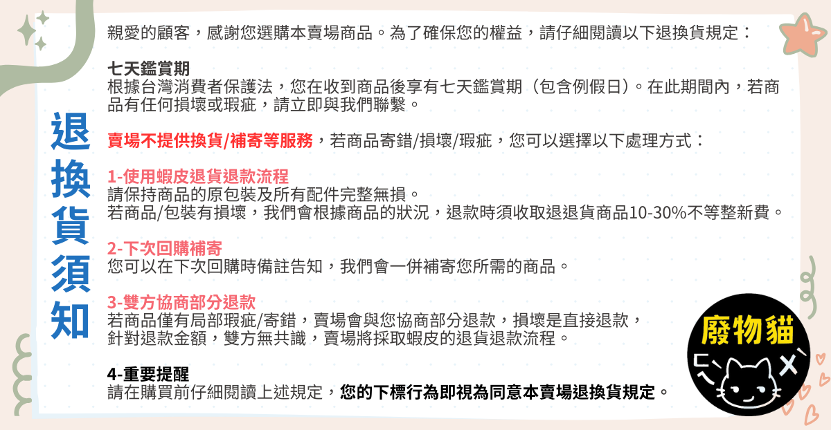 為完善您的購物體驗,iOPEN Mall 已於 2024 年 11 月 1 日更新「iOPEN Mall 服務條款」,並於 2024 年 11 月 21 日更新「隱私權政策」,相關條款及政策更新內容如下。如對本次調整有異議,得於 2025 年 12 月 31 日前,通知本公司終止契約。若未於前述期限前提出異議並通知本公司終止契約者,則視為同意。十分感謝您的支持,iOPEN Mall 將提供給您更優質的服務。