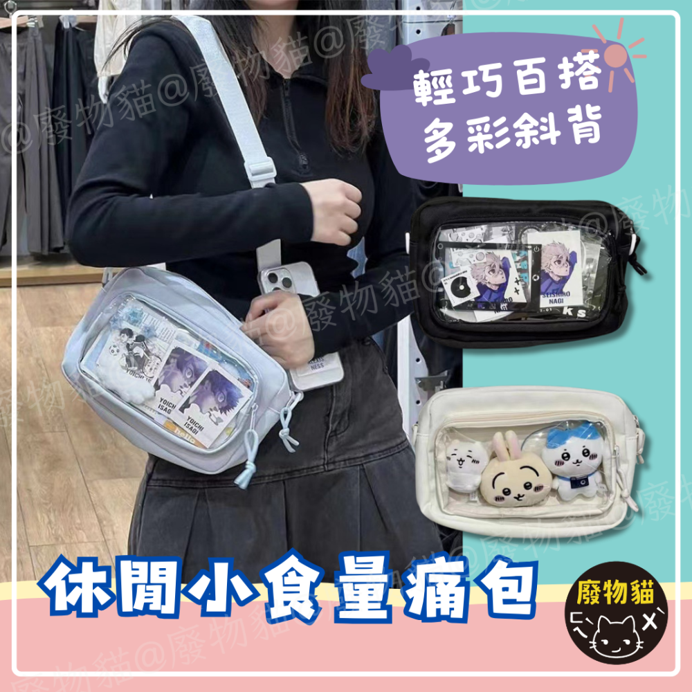 痛包 斜背包 娃包 10cm 肩背包 曬娃包 休閒小食量痛包 米白色 廢物貓 [B0151]