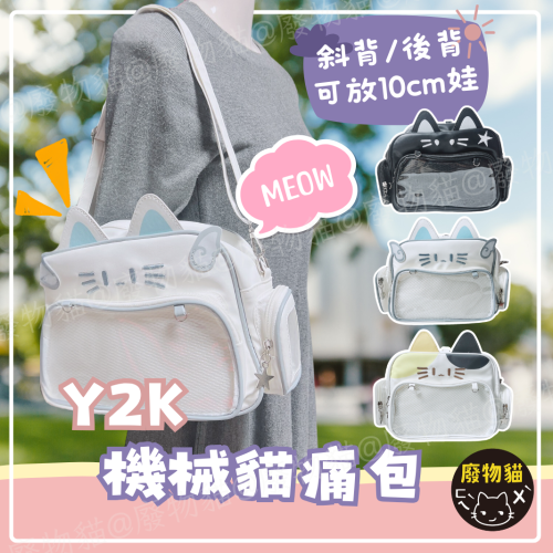 痛包 斜背包 娃包 10cm 後背包 Y2K機械貓娃包 曬娃包 黑色 廢物貓