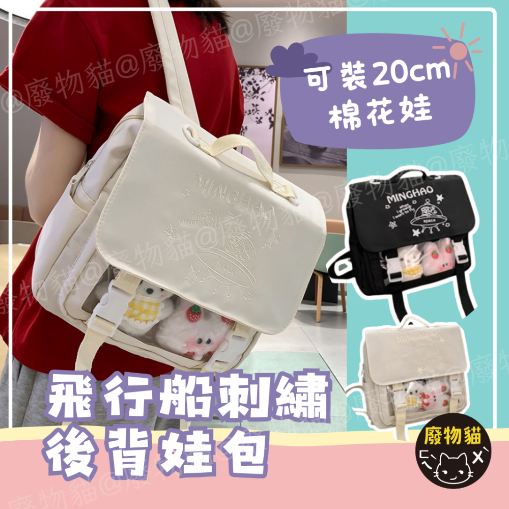 痛包後背包 後背包 痛包 娃包 10cm 後背痛包 漫畫風後背痛包 白+黑 廢物貓
