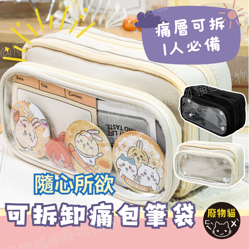 痛包鉛筆盒 筆袋 痛包筆袋 痛筆袋 痛包鉛筆袋 可拆卸痛包筆袋 黑色 文具用品 痛包 痛包裝飾 廢物貓