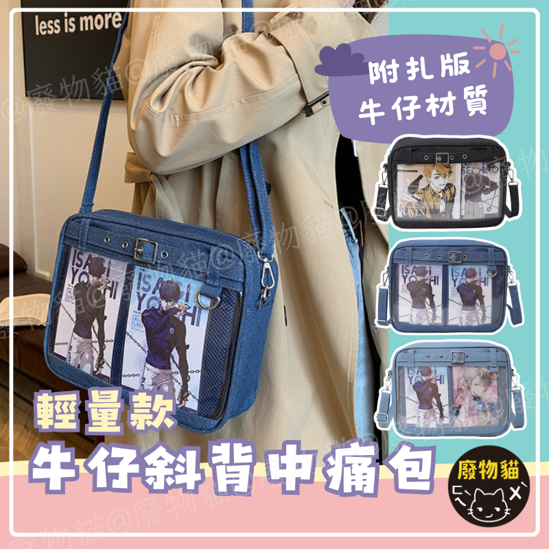 [可放A5有扎版] 牛仔斜背痛包 痛包 斜背包 10cm娃包 15cm娃包 [B0200] 廢物貓