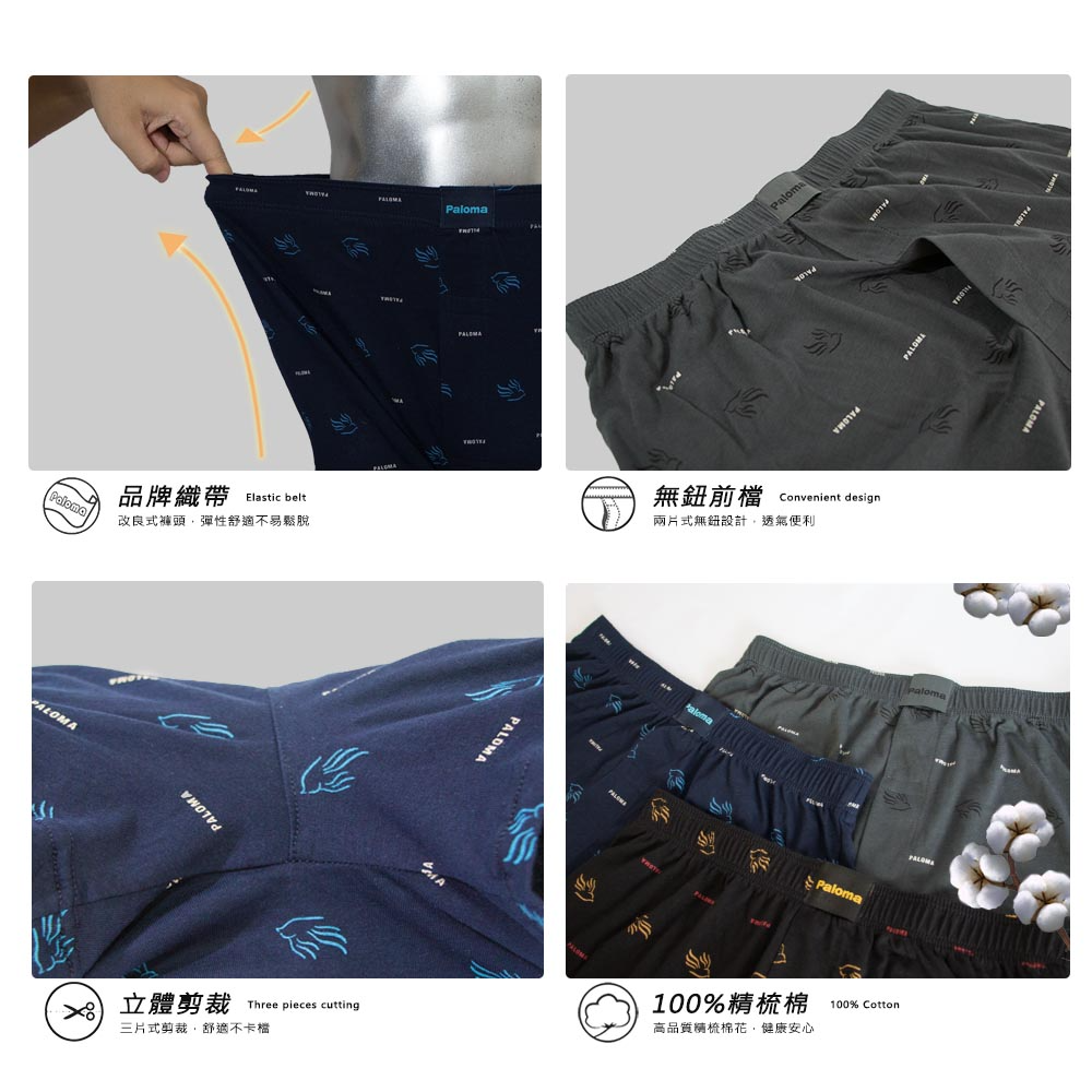 【Paloma】純棉平口褲-6件組 男內褲 四角褲 內褲(運動.印花.精紗)