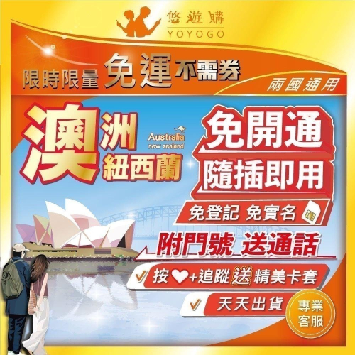 澳洲 紐西蘭 紐澳 通用 吃到飽 含通話 免開通 免實名 全境內 4G 高速 網卡 上網卡 網路 上網 電話 卡 悠遊購