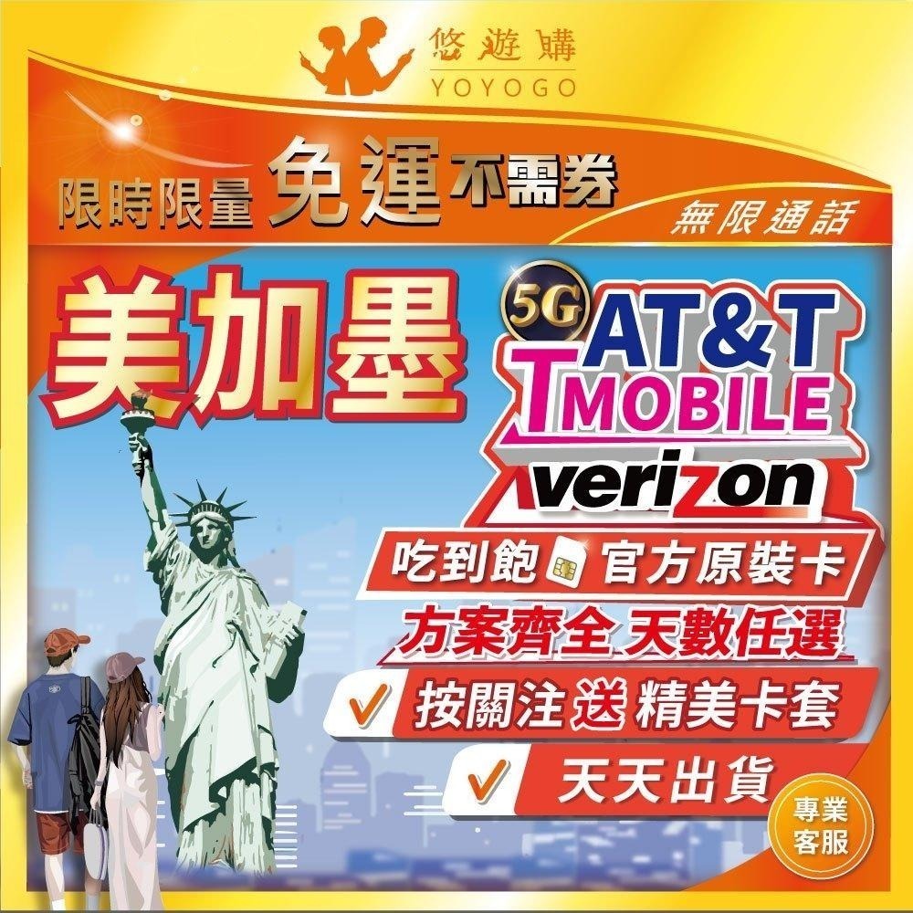 🟧套餐:Verizon美國吃到飽不降速.加墨每天2GB 原裝卡