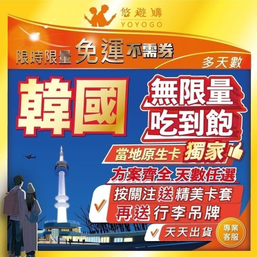 🟧套餐A:南韓5G【雙電信】吃到飽不降速