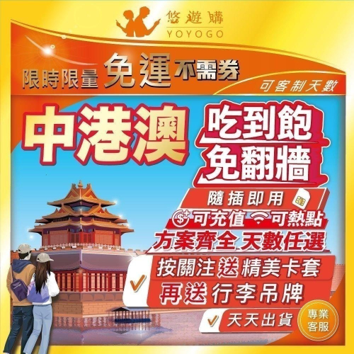 🟧獨家最大電信:中國、香港、澳門吃到飽