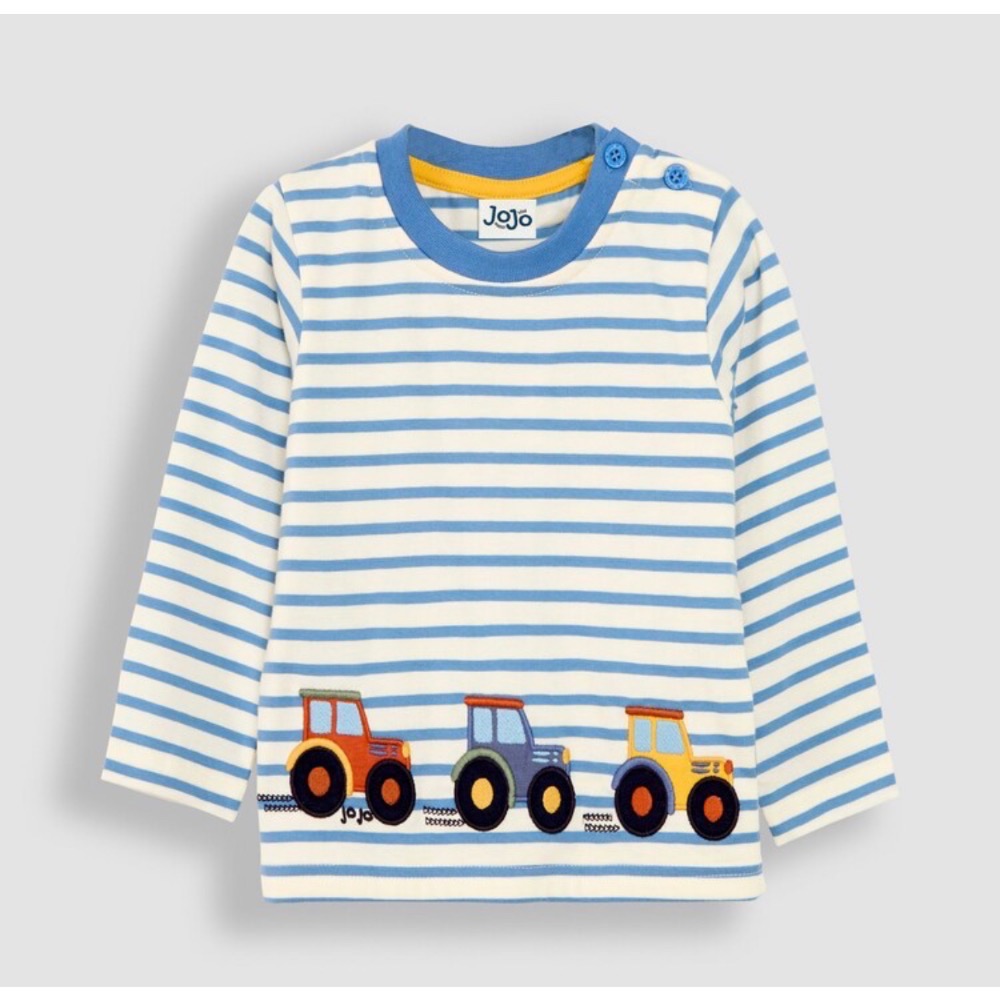 Jojomamanbebe刺繡吉普車條紋薄長袖