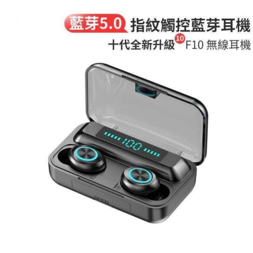 #3C商品系列 藍芽5.0雙耳無線 F10 F9升級版 LED三顯電量,精準掌握電量,數字顯示人性設計   雙耳採取分離式設計,單耳雙耳皆可自由切換,無須分主機還副機   千元等級音質,四核發聲 HIFI高保真,專業級音效,CP值爆表   超長時間續航,搭配超大型電倉,通話持續180H   AI智能電量顯示,隨時掌握耳機、查看電倉即時電量  雙耳指紋觸控設計,一鍵操作,接聽電話好簡單  升級磁吸收納倉,無需用力,開關輕鬆簡單,排除傳統卡扣式設計  防水設計,解決日常汗水雨水,日常困擾產品   規格  產品名稱:F10 Pro 真無線藍牙耳機  藍牙版本:5.0 藍牙距離:無障礙10米  耳機容量:50mAh  充電倉容量:1200mAh  額定輸入:5V-1A  📐 適用對象:有藍芽設備的手機、筆電、電腦,安卓蘋果皆適用 單一黑色.單一盒裝.內附2對耳帽.充電線.說明書