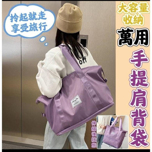 材質:600D牛津布 顏色:灰色、淡紫色 尺寸:約長42*寬23*高28公分、展開高約28+14公分 包裝: 單個袋裝 (注:尺寸為手工測量,誤差尺寸±2cm為國際驗貨標準可接受範圍) 影片僅供參考,請以實際收到的貨物為准 特點:防潑水面料,具有耐磨耐刮防潑水的特點,出行隨意放置,有效保護包內物品安全    底部採用拉鏈隱藏擴展功能,讓你在出行中解決物品過多或過少帶來的困擾    內置貼心乾濕分離袋設計,可放濕毛巾、汗濕衣物等,乾淨衛生,方便易打理    多種背法滿足不同需求,手提、手挽、單肩自由調換,舒適自如,背面拉桿插位設計,出差旅行,省心省力    大容量,多層儲物空間,可裝筆記本電腦、雜誌、衣物、鞋子、折疊傘、杯子等物品,滿足你的日常出行物品