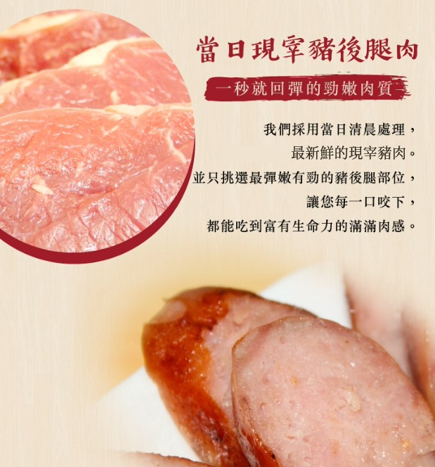 肉質紮實 – 豬後腿肉製作,彈牙多汁。