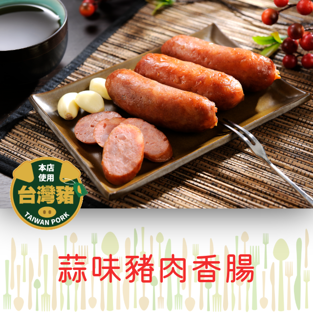 蒜味豬肉香腸嚴選豬後腿肉,搭配新鮮蒜頭製作,讓蒜香自然滲入肉質,帶出濃厚鹹香風味。經過慢火烘烤,使香腸外皮微酥,內裡鮮嫩多汁,每一口都能感受到蒜香與豬肉香氣完美融合,濃郁而不嗆辣。風味獨特、口感豐富,無論單吃、搭配米飯或烤肉聚餐,都是絕佳選擇,讓人一吃就愛上!