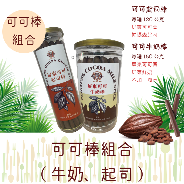 屏東可可棒組合[可可牛奶棒(150公克/罐)、可可起司棒(120公克/罐)]