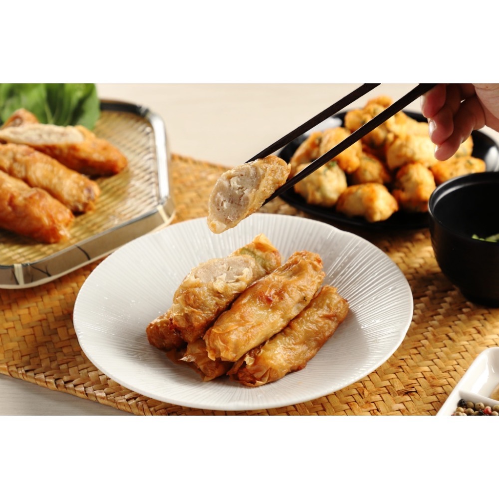 ⚠️數量售完為止~ ⏳效期:2024.09.01 現貨 新鮮腐皮裹著魚漿、洋蔥等內餡, 腐皮的酥脆與蝦仁的鮮味搭成絕配,不沾醬就很好吃! 【基隆魚鮮來】風味捲系列 600g/包 款式: A.雞捲 B.芋頭捲 C.花枝捲 D.蝦仁捲 『基隆魚鮮來』有別於多數業者以大量高麗菜、 紅蘿蔔碎丁來取代及減少魚漿用量, 用腐皮將魚漿、豬絞肉、洋蔥碎丁、豆薯等內餡拌勻, 包起來後下油鍋油炸,成功擄獲每一個挑剔味蕾。 老闆對於食材的採購、手工製程的堅持、 存放的新鮮度、自製以增加食物完整性等超高標準。 規格:600g/包(8-10條) 保存期限:一年 #CC