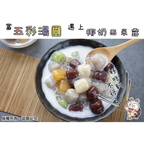 出貨天數:10-15(排單出貨) 遇滿單延期 💟九份五彩圓💟 元宵將至來碗熱呼呼的湯圓吧~! 吃湯圓不只是吃甜的,鹹的湯圓也很讚唷! 👍👍👍著名觀光勝地-九份 最著名的美食,大概非芋圓、地瓜圓莫屬🏆。 近年來又增加了五色圓。 👉五色圓,由花生,紅豆,芋頭,抹茶,地瓜配合調配而成。這幾年來,已經成為新起之星了🤤🤤🤤 🍧搭配剉冰一起吃口感較為彈性😋 ☕️配碗紅豆熱湯,湯圓軟糯又香甜,整碗補心又補氣!!! 湯圓象徵著團圓氛圍... 不論是冬至,元宵,年節...或是天氣冷時來上一碗 增加彼此感情.也能暖呼呼你的身體唷! 紅豆湯圓做法: 1.紅豆洗淨後浸泡於水裡6小時待軟化。 2.準備一鍋水,水滾後加入紅豆汆燙30秒後撈起備用,去除紅豆皮苦澀味。 3.將五彩湯圓放入滾水裡小火煮熟,待湯圓浮出水面即可撈起備用。 4.水煮滾後加入紅豆,滾開後轉小火再燜煮40分鐘。 5.最後加入砂糖以小火攪拌至砂糖融化,最後再加入五彩湯圓就可以上桌囉! ⚖️重量:一包600g 💕保存:冷凍保存9個月