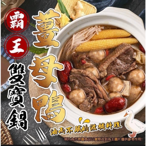 ★鴨雙寶=鴨肉+鴨丸,還有豆皮喔~ 加+料不加價~一次滿足你 !! ★冬天必吃!一碗薑母鴨,讓你幸福又滿溢❤ 堅持手工熬製,薑母鴨湯以20年經驗燉煮技巧,保留了鴨肉的原汁原味,加上主廚獨特秘製配方,讓鴨肉肉質發出誘人的香氣~~ ✔想吃薑母鴨零廚藝也能輕鬆享用~ 加熱10分鐘就上桌,方便又好吃,零廚藝也能輕鬆享用~濃~醇~香~ ✘外面市售一份要350元 沒幾塊肉、鴨丸跟豆皮要另外加點加價、超級貴森森! ✔霸王專業料理+精美袋裝=平價享受 一大袋、好吃又便宜、送人自己吃都很可以 !! ▲料理方式 退冰解凍後加熱,依照個人喜好加入喜歡的火鍋料配料、蔬菜。 🔴產地:台灣 🔴保存期限:-18度c以下,18個月 🔴重量規格:1200g±5%(固形物180g)