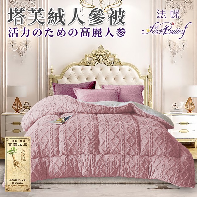 廠商直寄 ◆絨與暖的結合接觸融合,留下最柔軟的觸感 ◆雙面絨毛AB面設計,細膩豐富面料,細緻密實面料,加絨鎖溫保暖 ◆塔芙絨毛被鎖溫功能強,絨底牢固不脫毛,底部厚,緊密平整 ◆萃取人參中藥草精華,提升人體睡眠吸收效率,養生活力幫助好眠 ◆人參填充,胜肽纖維,對於身體有百利且有保健作用 ◆入眠使您更加備感舒適、好像睡在雲朵上 ◆體驗高級的貴族享受,五星級飯店的睡眠品質 公開平台活動價最低售價3880元 私密平台不限 產品名稱:【FlowerButterf 法蝶】塔芙絨人參被2.5Kg//芋粉紫 產品型號:FB0010-L25 產品尺寸:180x210公分±5%(6x7呎) 包裝尺寸:56x46x17公分±5% 淨重/毛重:2.5公斤/2.9公斤±5% 表布材質:100%聚酯纖維(聚暖纖維) 內填材質:100%聚酯纖維(含人參中藥草) 內容物:被子x1 ※手工測量,實際以收到商品尺寸為準
