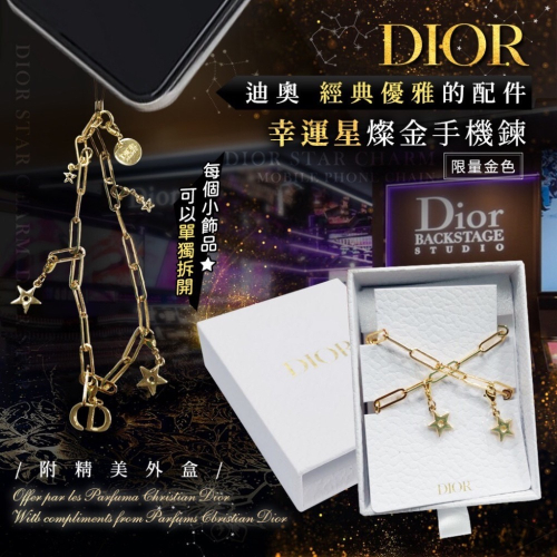 絕美限量VIP Gift🎗️DIOR迪奧✨幸運星燦金手機鍊"限量金色"【附盒】 #專櫃正品 #絕美限量VIPGift #送禮首選 經典星星和時尚CD標誌✨ 可以當作手機&包包掛飾📱 也可以DIY改造當作手鍊📿 而且還是超難搶的限量金色 💛 💎💎時尚又精緻的單品💎💎 喜歡DIOR的朋友們絕對不能錯過.ᐟ.ᐟ 跟閨密一起+2📿掛在手機上超好看💗💗 #飾品