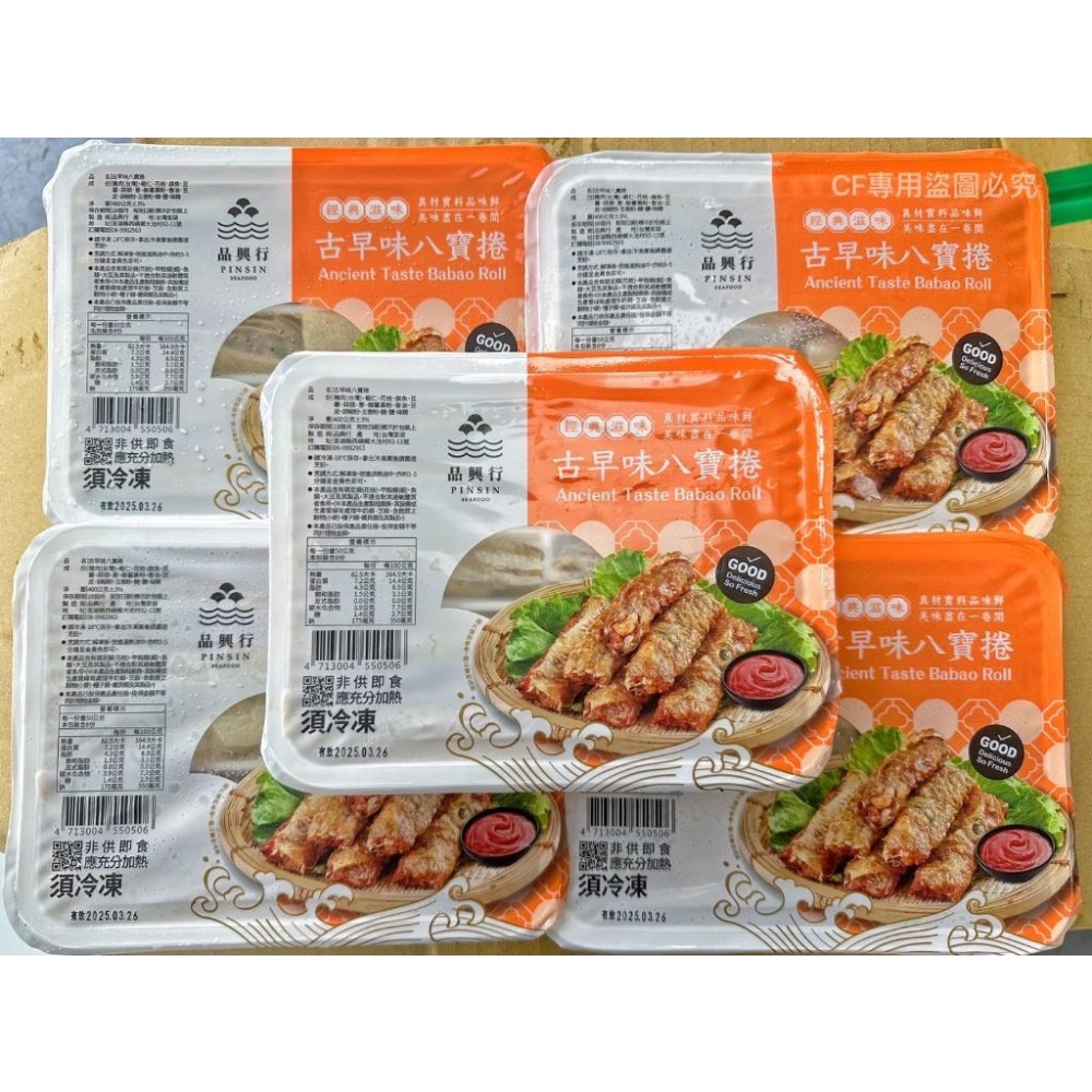 不接急單工廠排單出貨 偏遠外島另計 💡45倍數免運 廠商直發 請單獨下單 ⚠️宜花東及偏遠地區 運費另計⚠️ 🌊澎湖在地超強辦桌菜🏅 品興行老闆復刻從小吃到大的經典美味✨ 小小一條肉捲就可以吃到”山珍海味”哦🤤 🌈品興行-古早味八寶捲 400g/盒 💰$170/盒(400g,10條) #八寶捲 總是出現在辦桌菜後面幾道 賓客們常會打包回家當點心❤️ 那滿滿懷舊的滋味~ 真的特別香!特別好吃! 老闆強力推薦✨✨✨✨ 一定要搭配番茄醬🥫 好吃的程度會更上一層樓哦💯 使用澎湖當地旗魚漿 混上蝦仁、花枝、台灣豬絞肉及香料。 搭配老闆特製腐皮㊙️ 外層口感真的非常酥脆 內餡也是柔軟又多汁💦 可以油炸👌可以氣炸👌 🔺保存方式:冷凍-18℃以下保存 🔺產地:台灣
