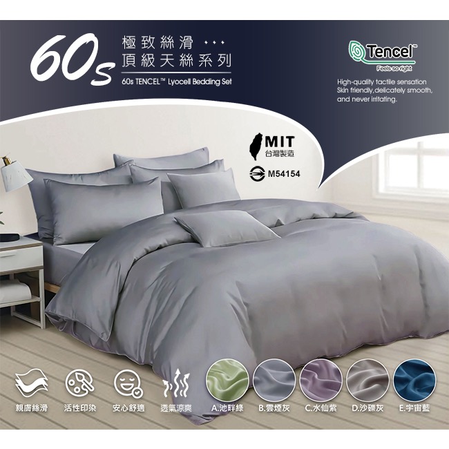 廠商直寄 台灣製~頂級100%60支天絲三件套床包組-加大/四色任選 ◆100%天絲60支最高等級萊賽爾纖維(天絲吊牌) ◆台灣製造,品質保證 ◆獨特的溫度調節功能 ◆親膚性的新時代纖維 ◆保持均溫的纖維特性 ◆床墊高度35cm內可包覆 產品名稱:頂級60支天絲床包組-單人/雙人/加大 產品型號:B0083/砂礫灰-BS/BM/BL、 B0083/池畔綠-GS/GM/GL、 B0083/水仙紫-LS/LM/LL、B0083/宇宙藍-NS/NM/NL 產品尺寸:請參照下方尺寸標示 包裝尺寸:63.3x7.8x48.3公分±5% 淨重/毛重:0.163公斤/0.192公斤±5% 床包材質:100%萊賽爾纖維 (天絲60S) 枕套材質:100%萊賽爾纖維 (天絲60S) 內容物:床包x1、枕套x1、兩用被x1 產地:台灣製 隱密式床包收縮鬆緊帶:有【床頭床尾ㄇ字型車工、採用直徑1.5cm高彈力鬆緊帶】 可承受之床墊厚度:35±2公分【市售獨立筒床墊皆可適用】 ※手工測量,實際以收到商品尺寸為準 ▼商品規格 👉單人薄床包二件組: 床包x1/3.5x6.2尺(105x186公分) 枕套x1(45x75公分) 👉雙人薄床包三件組: 床包x1/5x6.2尺(150x186公分) 枕套x2(47x75公分) 👉加大薄床包三件組: 床包x1/6x6.2尺(180x186公分) 枕套x2(47x75公分) 👉以上均附正天絲吊牌 👉附贈精緻收納提袋x1