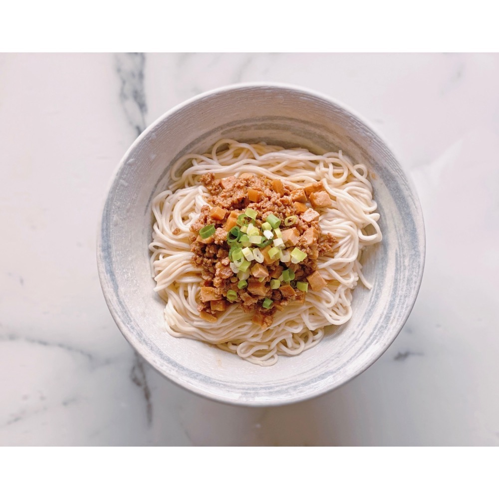 1、熱水滾後關火,放入炸醬包靜置5分鐘。