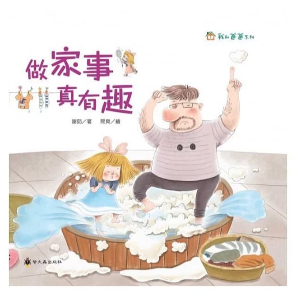 | 每個星期我最期待的,就是和爸爸做家事! 洗碗咚咚鏘,就像打鼓一樣熱鬧。 抓起吸塵器向前衝,下一個要消滅哪個大壞蛋? 跳進洗衣槽,腳上踩的是蓬蓬的白色浪花, 快加入我和爸爸的家事特攻隊, 看看我們怎麼把家事變得好玩又有趣。 |