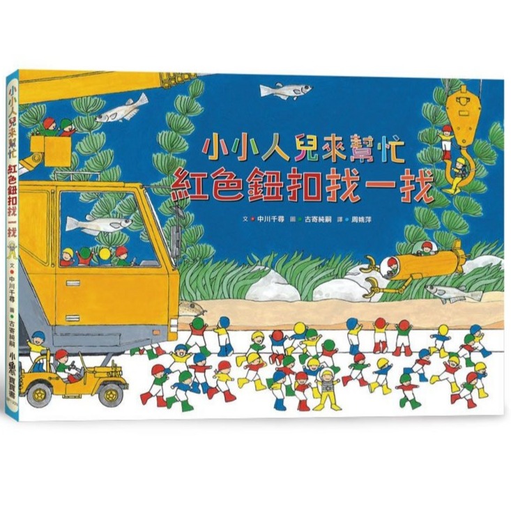 兔子玩偶眼睛的紅色鈕扣不見了,「請幫忙找出來吧!」媽媽委託了小小人兒。使命必達的小小人兒一下子就在房間裡找到了,但是……「啊!不小心掉進魚缸裡了!」該怎麼辦呢?起重機、高空作業車、潛水艇、挖土機、工程車與小小人兒通力合作,大顯身手!