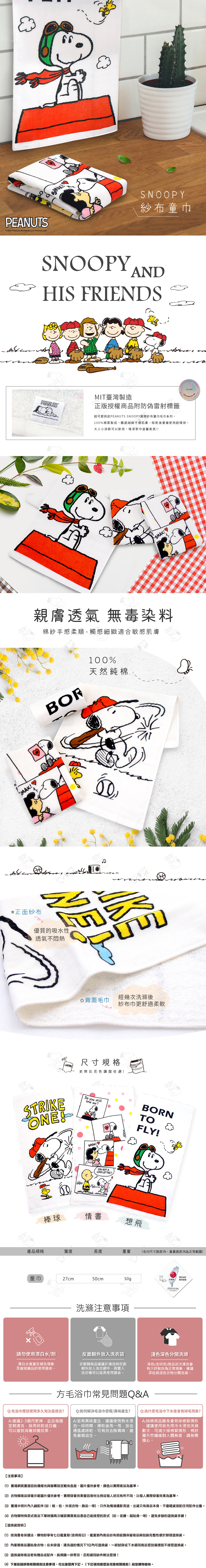 【產品名稱】SNOOPY史努比- MIT印花紗布童巾/小毛巾
