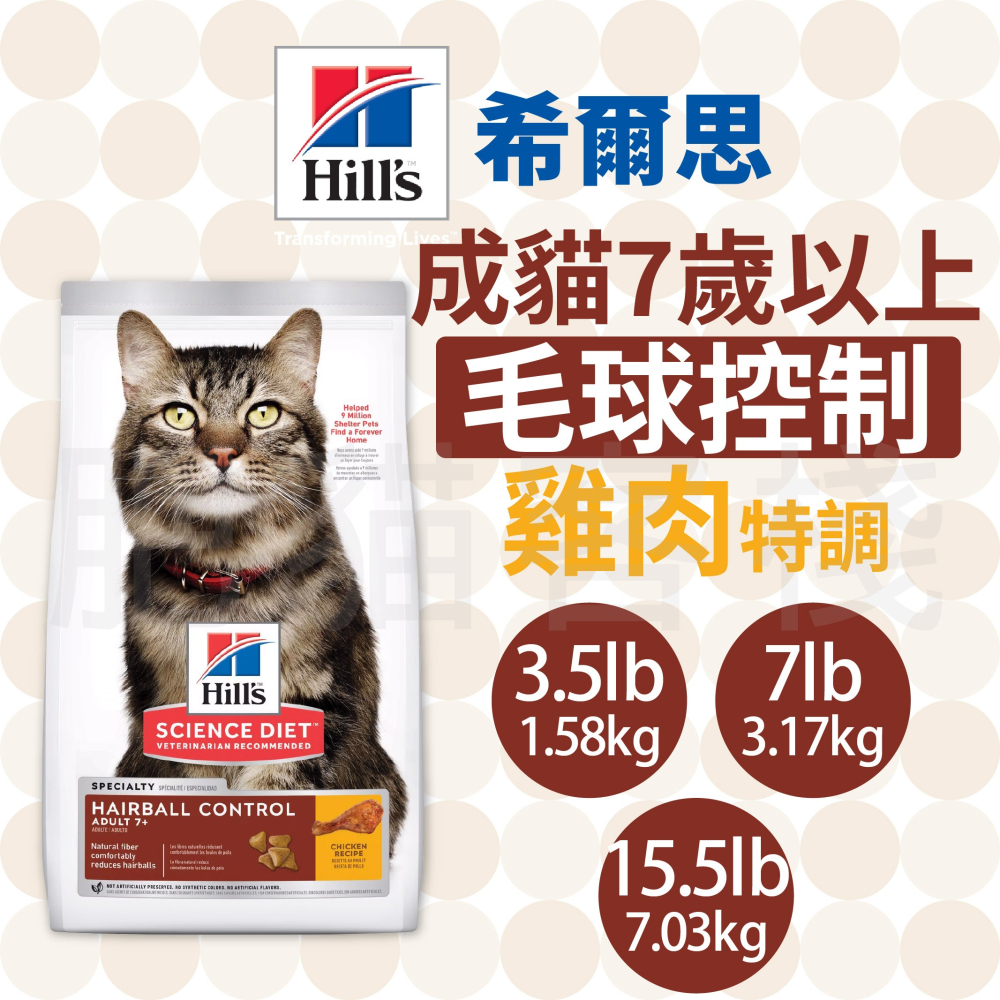 《HILL'S》 成貓 7歲以上 毛球控制 雞肉特調